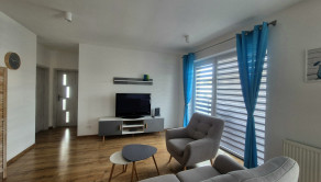 Dispozícia - Byt ponúka vzdušnú dennú zónu s kuchyňou na mieru, jedálenským stolom a obývačkou s výstupom na balkón. Dve samostatné spálne poskytujú dostatok súkromia. Kúpeľňa je vybavená moderným sprchovým kútom a kvalitnou sanitou, WC je oddelené.